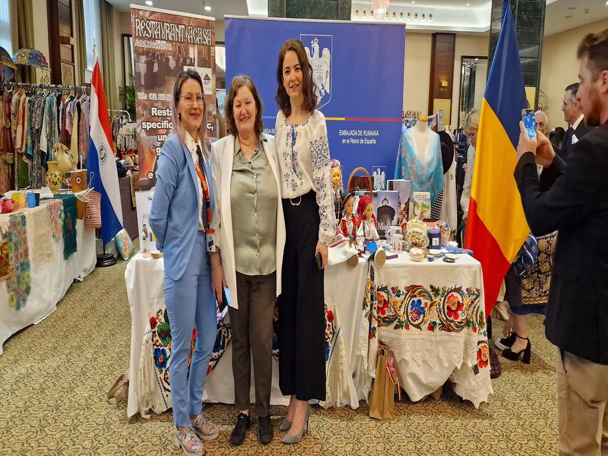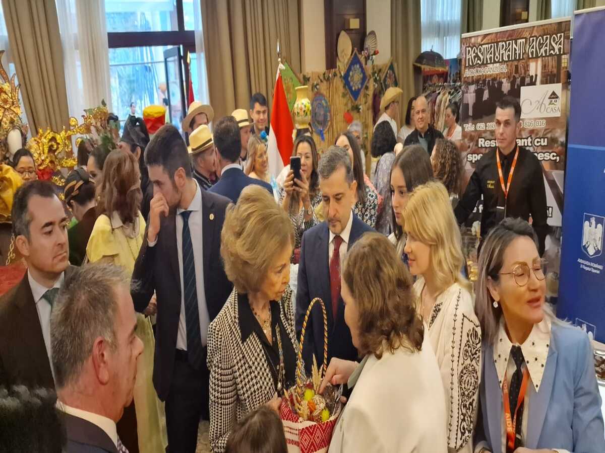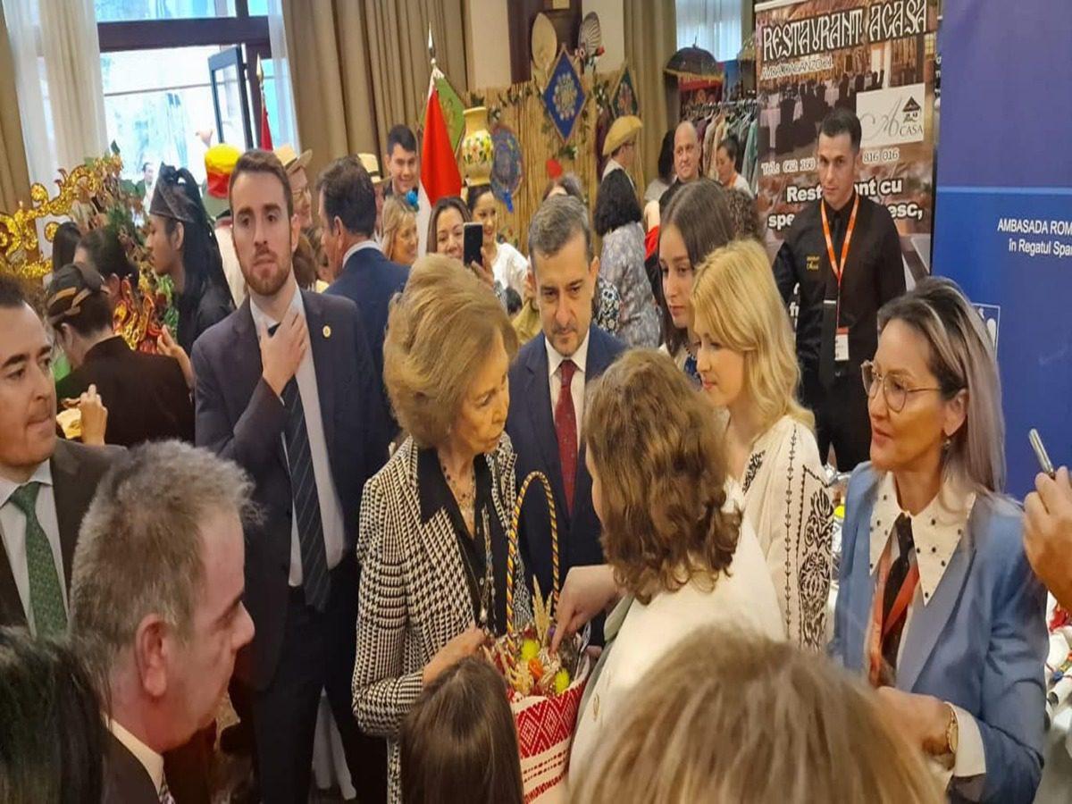 En el stand de Rumanía, la Reina Sofía fue recibida por el Embajador de Rumanía ante el Reino de España, Su Excelencia George Bologan, y representantes de la comunidad rumana en Madrid, con nuestra hospitalidad específica, buen humor, artesanía y productos gastronómicos rumanos.