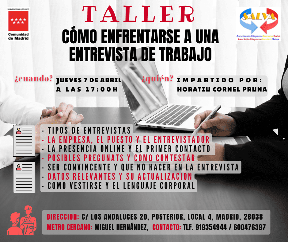 30-03-2022 La próxima semana, jueves 7 de abril, a las 17:00 horas, continuaremos con los talleres de Horatiu relacionados con la orientación en el mercado laboral.