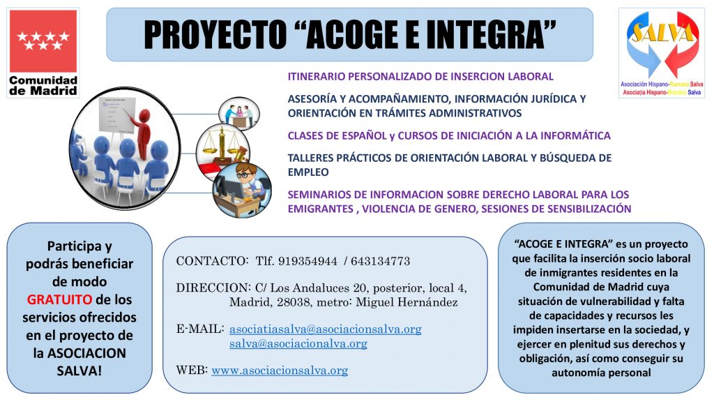 11-02-2022 Os presentamos el proyecto “ACOGE E INTEGRA”, el cuarto proyecto que tenemos aprobado para este año. Es un proyecto que facilita la inserción socio laboral de inmigrantes residentes en […]