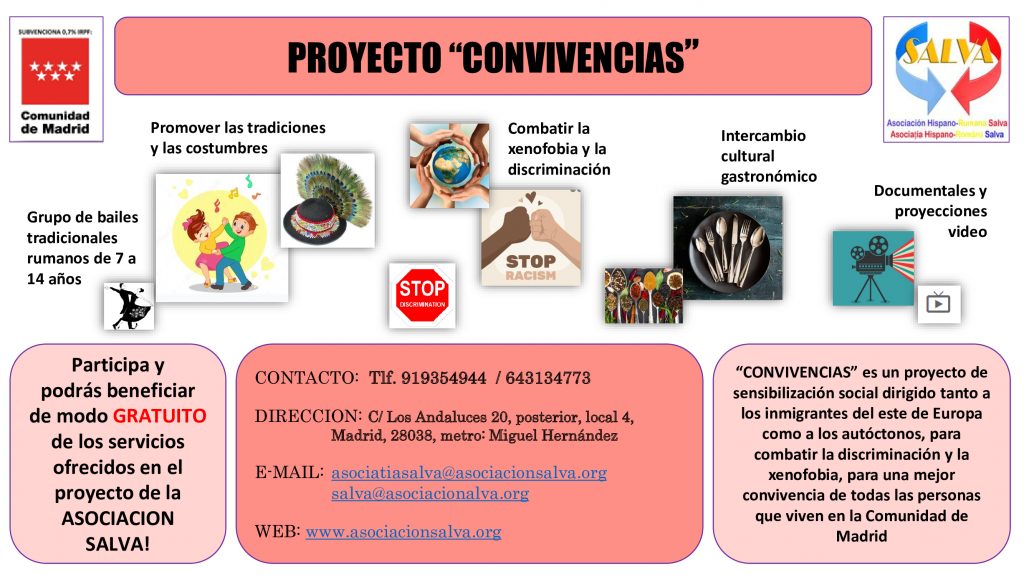 27-01-2022 Os presentamos otro de nuestros proyectos para este año, “CONVIVENCIAS” es un proyecto de sensibilización social dirigido tanto a los inmigrantes del este de Europa como a los autóctonos, […]