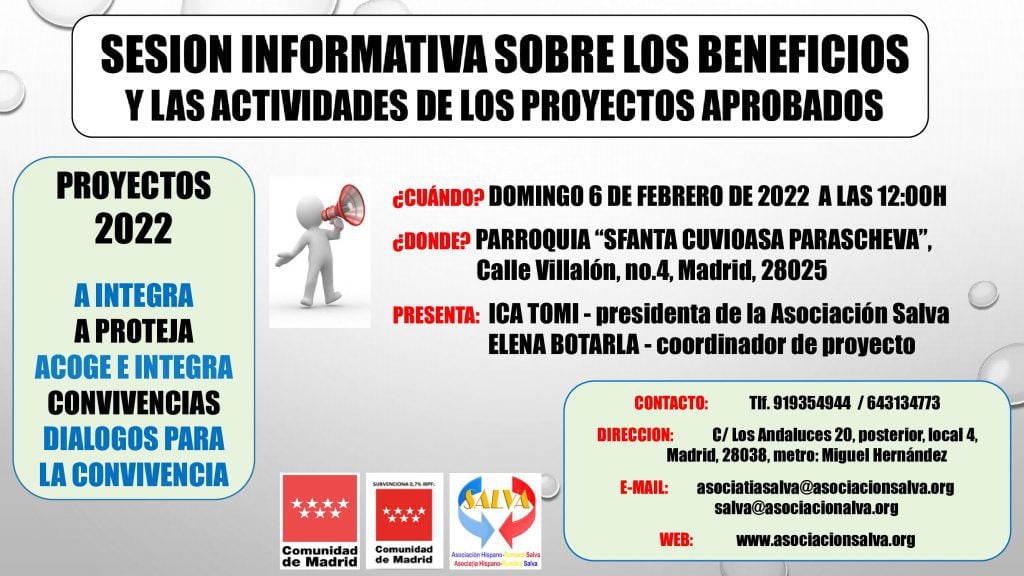 01-02-2022 Domingo, el 6 de febrero 2022, seguiremos con la tercera SESION INFORMATIVA de este año, donde hablaremos sobre los proyectos y las actividades de la Asociación Salva. Esta vez […]
