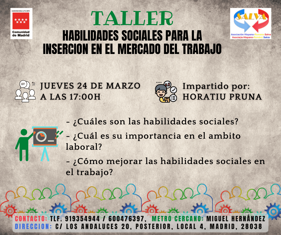 18-03-2022 La próxima semana, jueves 24 de marzo, a las 17:00h, os esperamos en un nuevo taller con Horatiu Pruna. Vamos a hablar de habilidades sociales para la inserción en […]