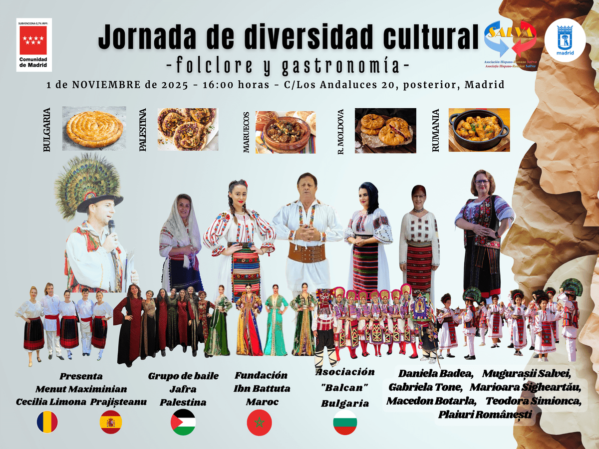 La Asociación Hispano-Rumana Salva tiene el placer de invitarles a la Jornada de Diversidad Cultural, un encuentro dedicado a celebrar la riqueza y el diálogo entre culturas.