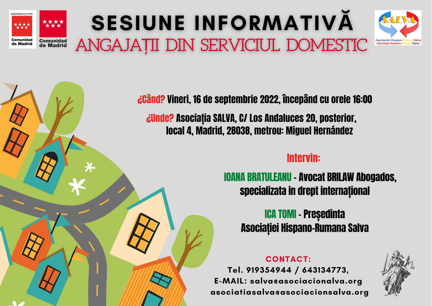 🔊 Queridos amigos, el 16 de septiembre, a partir de las 16:00 horas, organizaremos una nueva sesión informativa. En esta ocasión hablaremos sobre las empleadas de hogar en España, y debatiremos más extensamente las noticias relacionadas con esta categoría. Van a intervenir, Sra. Ioana Bratuleanu (abogada Brilaw Abogados, especializada en derecho internacional) y la Sra. Ica Tomi (presidenta de la Asociación Hispano-Rumana Salva). Prepara tus preguntas para nuestras invitadas, ¡nos vemos el 16 de septiembre!