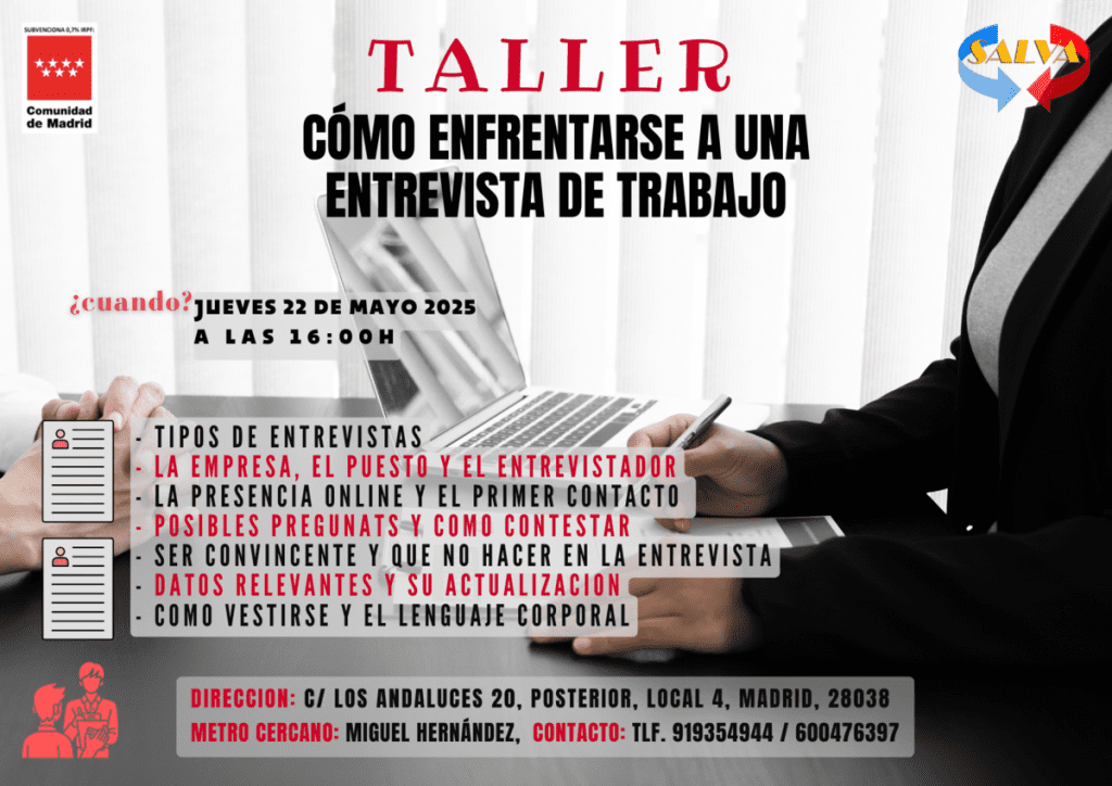 📢 Próximo Taller | «CÓMO ENFRENTARSE A UNA ENTREVISTA DE TRABAJO»