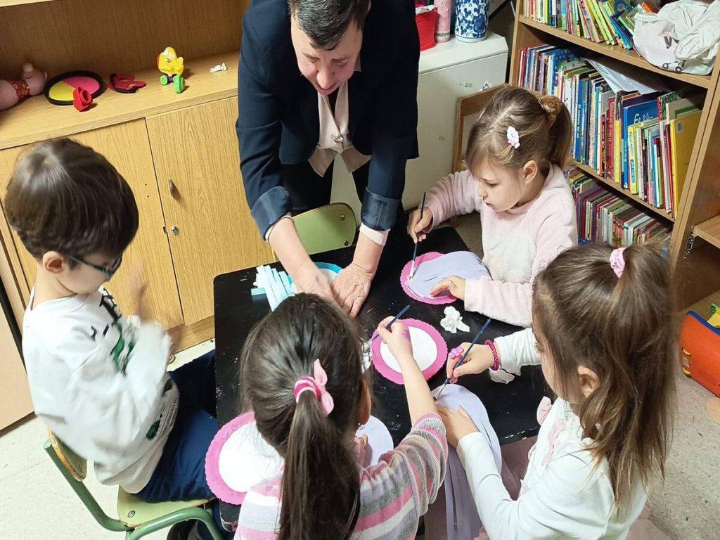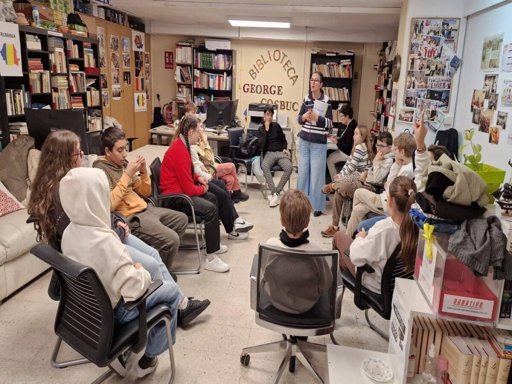 Laura Ciubotaru, profa de română, lucrează cu doua grupe diferite, pentru ca suntem tot mai multi. Încet dar sigur, copiii dobândesc tot mai multe cunoștințe. Astăzi l-au omagiat pe Eminescu.
