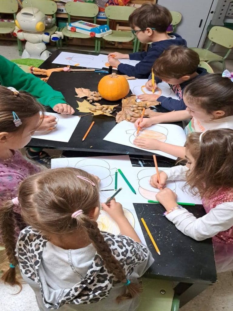 Între timp, Camelia Dunaev a desenat și a recreat împreună cu grupa 3 frumoase peisaje de toamnă.