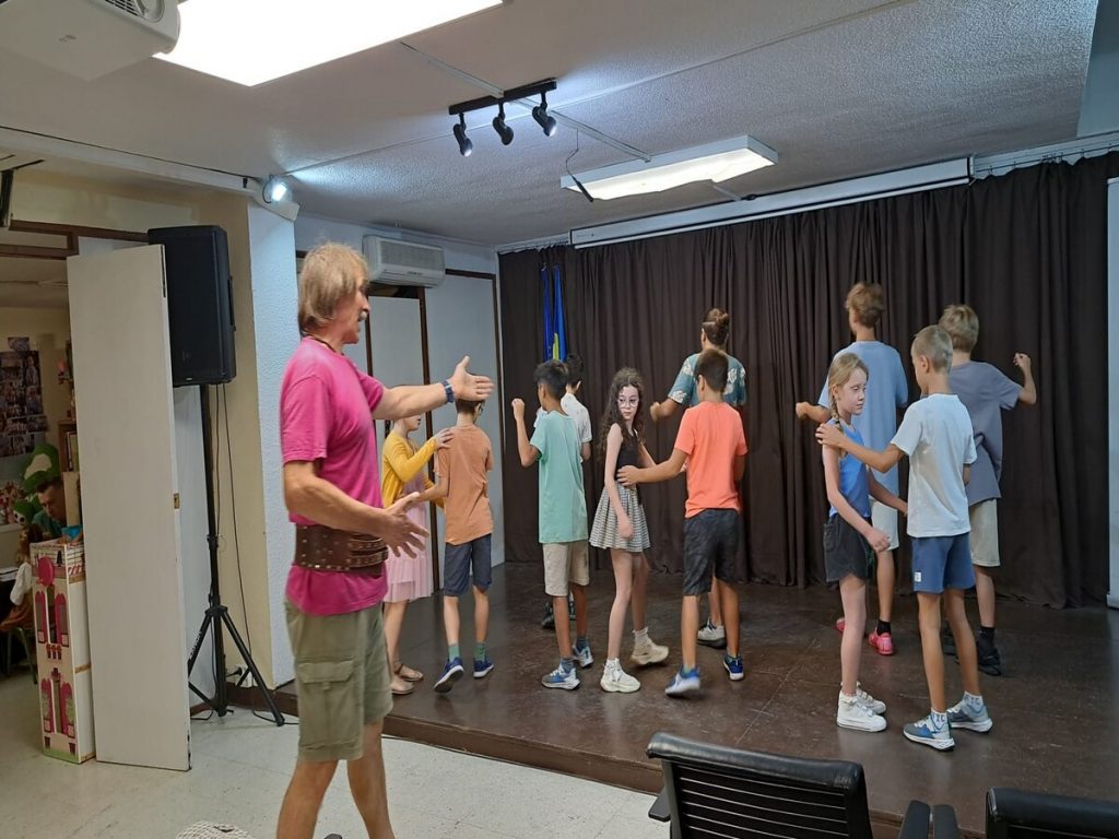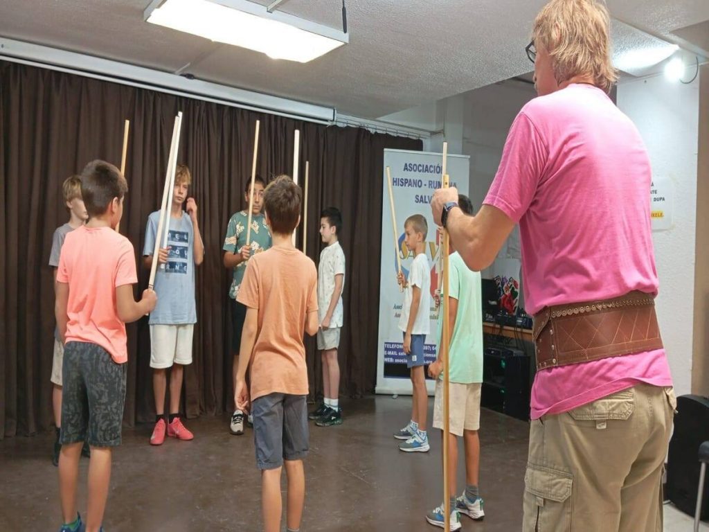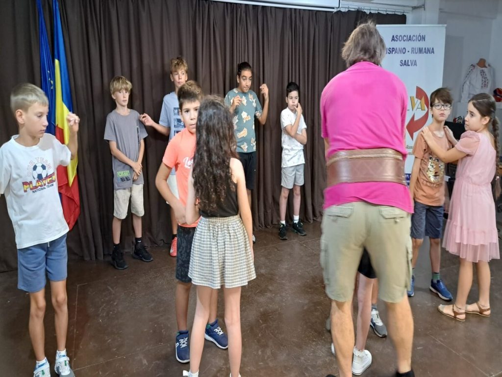 Ionel Olteanu cu rabdare si har ii invata pe Mugurasii Salvei cele mai minunate dansuri din diferite regiuni ale României.