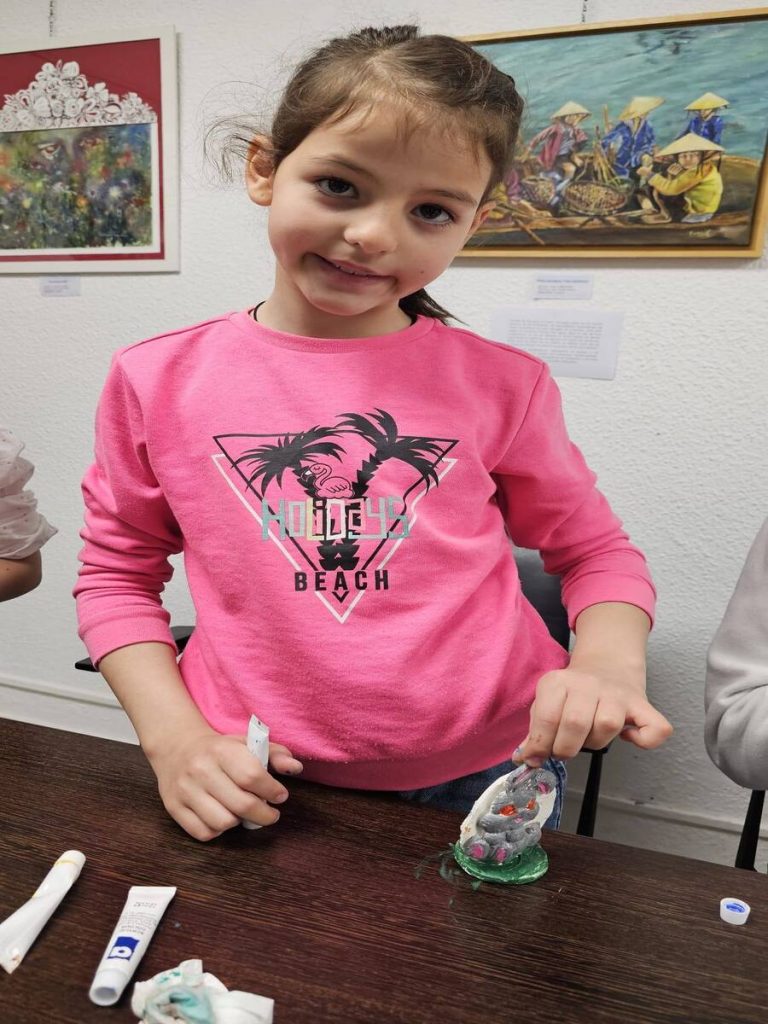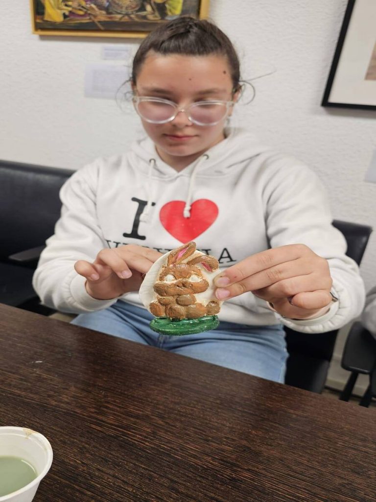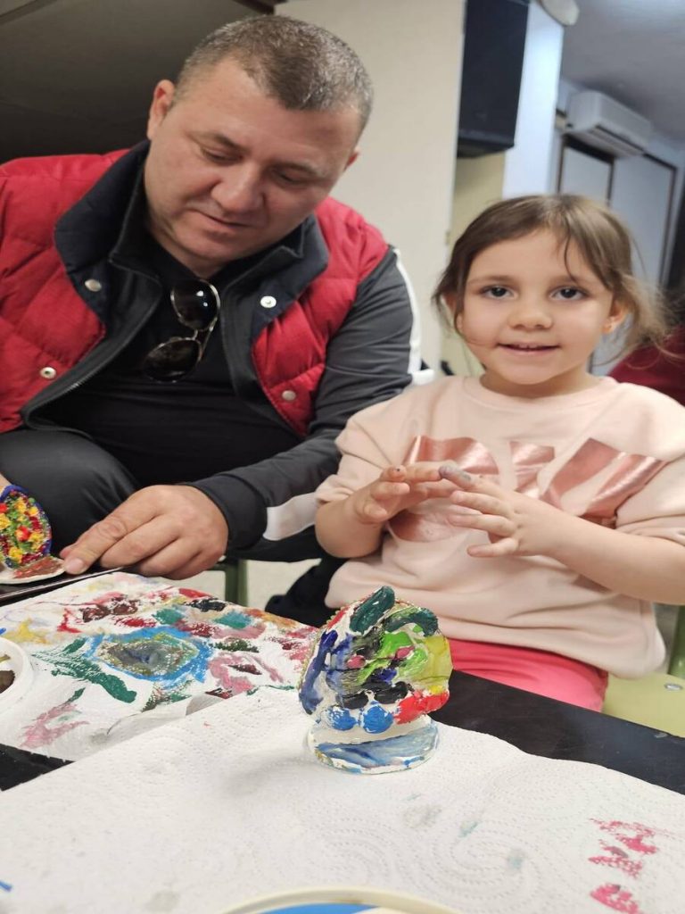 Creativitate: Astăzi, Camelia Dunaev ne-a pregătit figurine din ceramică, pe care copiii, dar și adulții, le-au colorat cu bucurie. Bineînțeles, fiecare a plecat acasă cu propria creație, ca amintire.