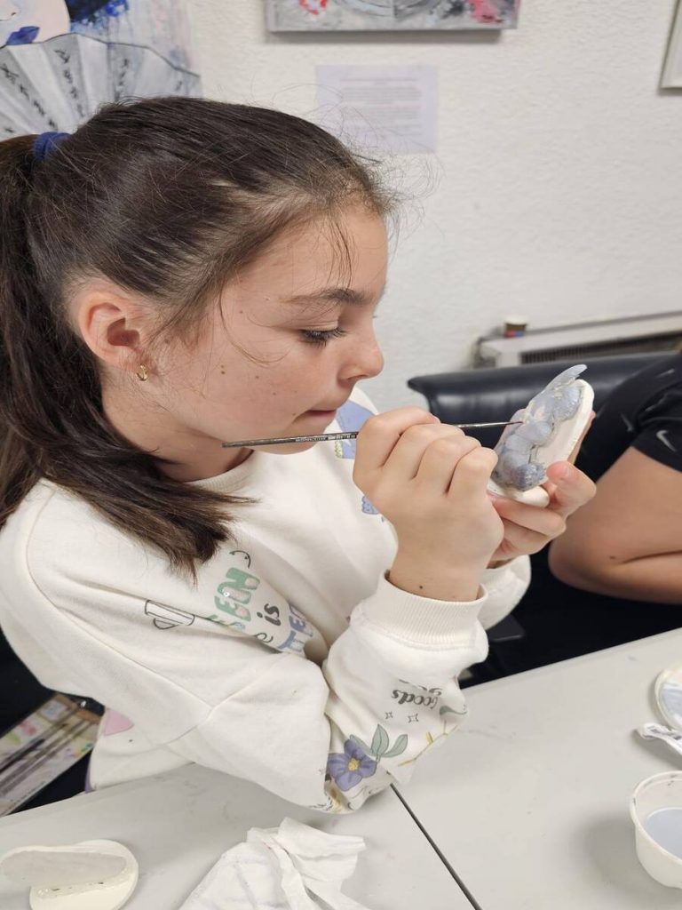 Creatividad: Hoy, Camelia Dunaev nos ha preparado figuritas de cerámica que tanto niños como adultos han coloreado con mucha alegría. Por supuesto, cada uno se llevó su propia creación a casa como recuerdo.