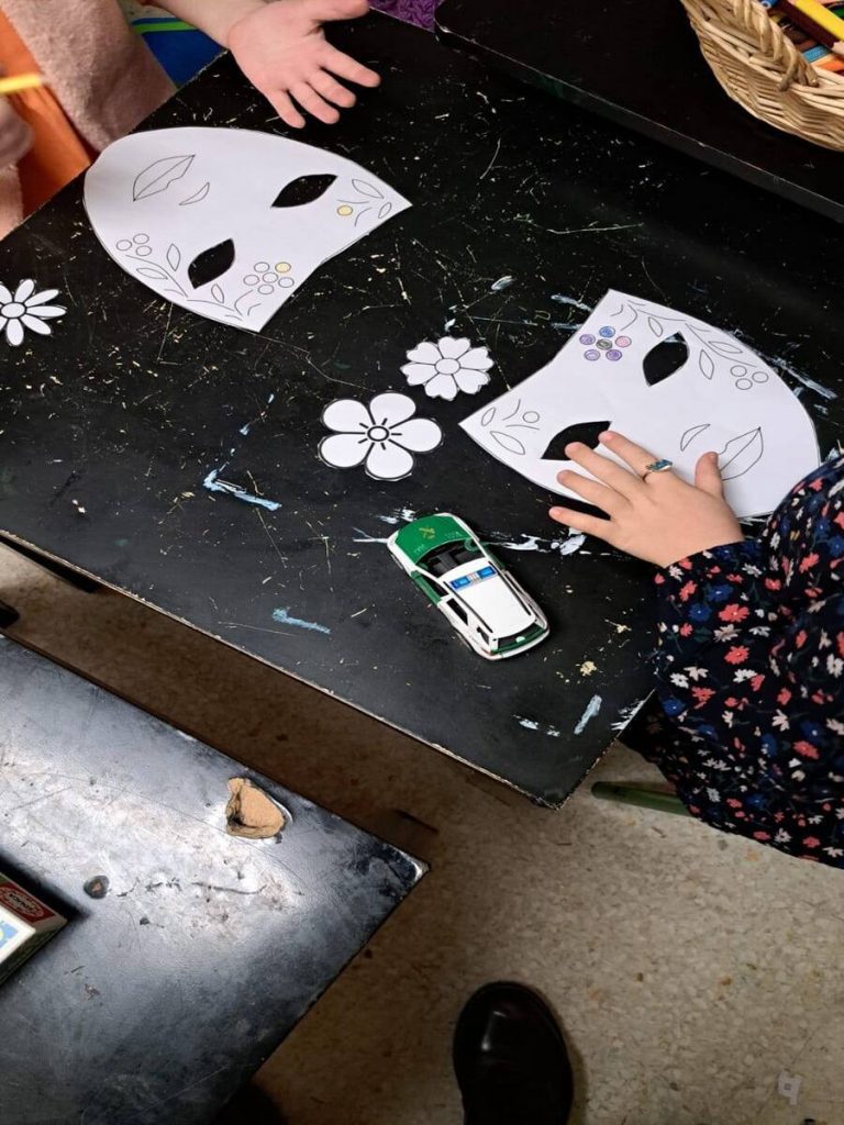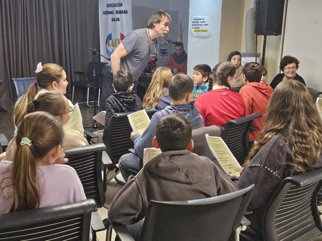 Camelia Dunaev cu cei mici au avut ca tema carnavalul iar Laura Ciubotaru in puținul timp avut a citit cu ei versurile. Va reamintim ca suntem in Madrid si învățăm sa citim si sa scriem in limba romana, o limba care o studiază doar un timp foarte scurt la sfârșitul săptămânii.