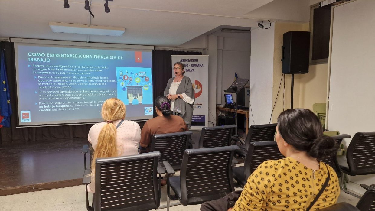 🇪🇸 Jueves, 20 Abril 2023, la las 16:00 horas, realizamos otro taller relacionado con la orientación en el mercado laboral. En esta ocasión los presentes aprendieron de Elena Botarla, sobre el tema «CÓMO ENFRENTARSE A UNA ENTREVISTA DE TRABAJO» (sobre los tipos de entrevistas, sobre el primer contacto, sobre la presencia online y el lenguaje corporal, sobre posibles preguntas en la entrevista y cómo responder, sobre qué NO hacer y cómo vestirse, qué es relevante, cómo terminar la entrevista y mucho más…). ¡Os informaremos sobre futuros talleres!