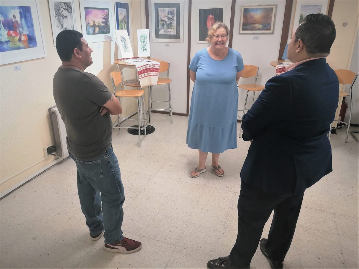 Astăzi am primit vizita ministrului consilier Edgar Alejandro Huezo Saavedra de la Ambasada El Salvador in Spania. Am avut ocazia sa schimbam impresii si opinii legate de cultura a doua tari foarte diferite (Romania si El Salvador), una europeana si alta de pe continentul american, dar si despre fenomenul migrației la nivel internațional. Domnul ministru a venit special sa viziteze expoziția noastră «NEXUS», unde a expus si Oswaldo Rodriguez, conațional al dansului. Speram ca acest mic moment petrecut împreuna sa se materializeze si in viitoare colaborări culturale.